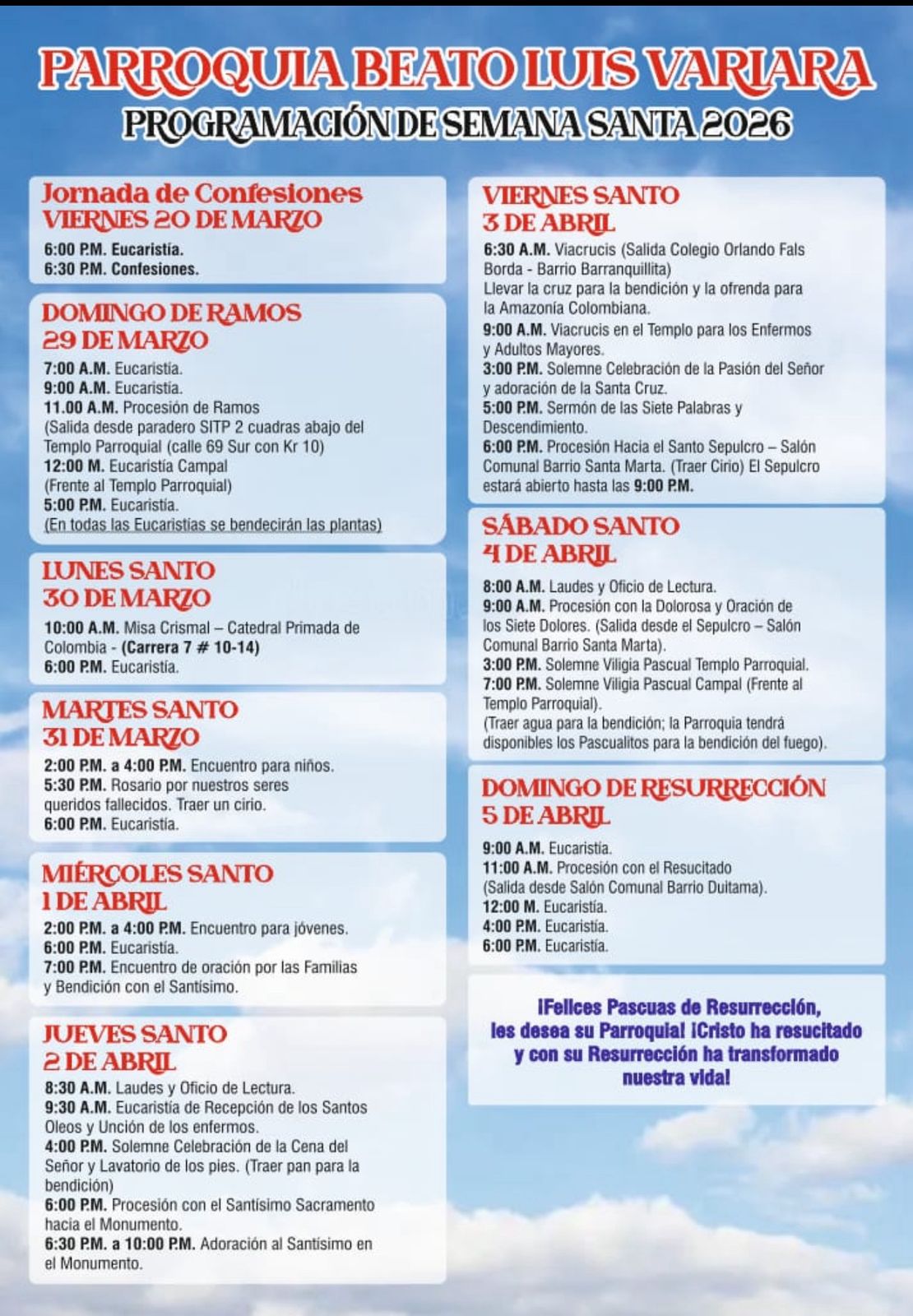 La Parroquia Beato Luis Variara, fue creada en el año 2007 por el entonces Cardenal Pedro Rubiano Sáenz. Pertenece a la Arquidiócesis de Bogotá, Vicaria Episcopal Territorial de San Pablo y está conformada por varios barrios de la localidad de Usme, al sur de la ciudad.